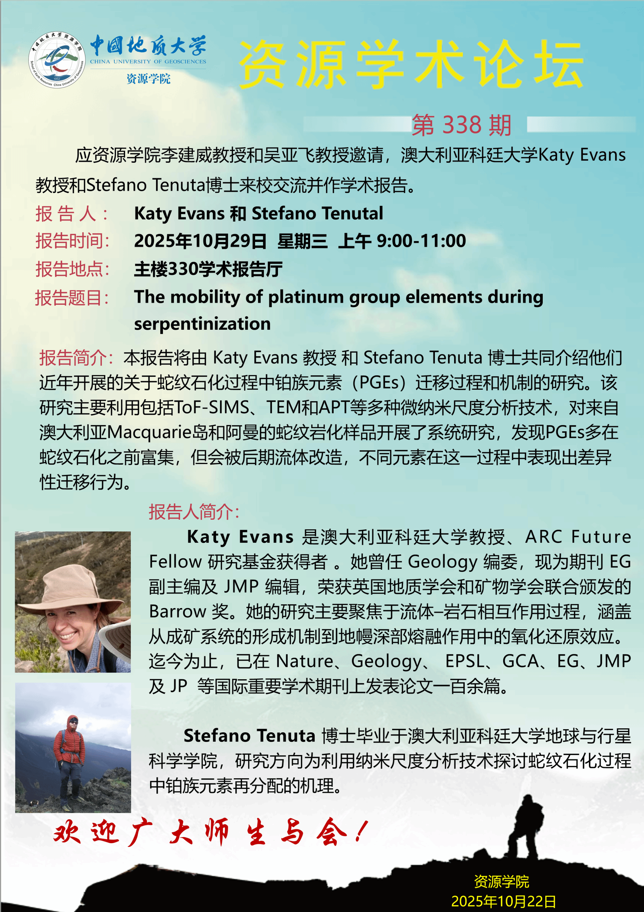 【10月29日】第338期bevictor伟德官网,韦德官方网站:Katy Evans、Stefano Tenutal学术报告