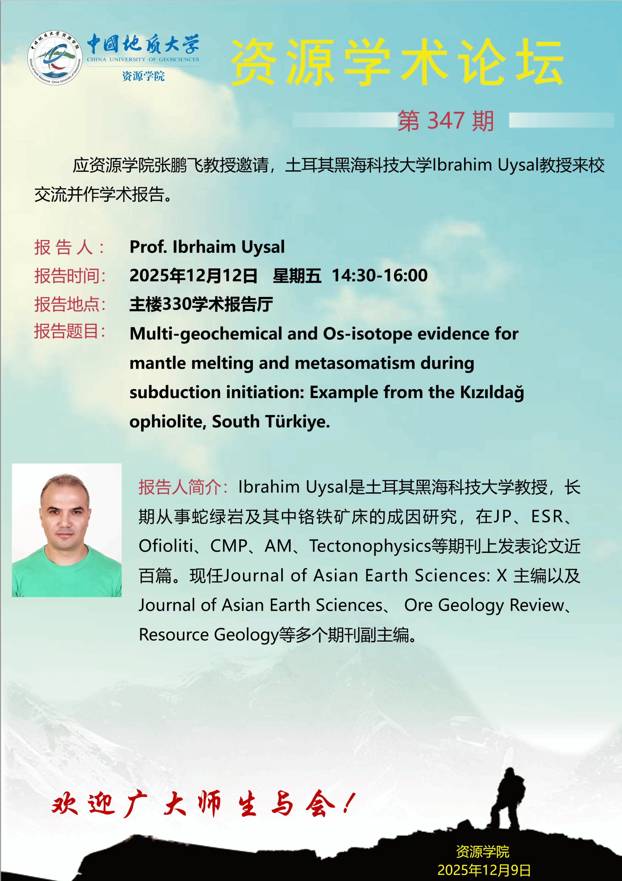 【12月12日】第347期bevictor伟德官网,韦德官方网站:Prof. Ibrhaim Uysal学术报告