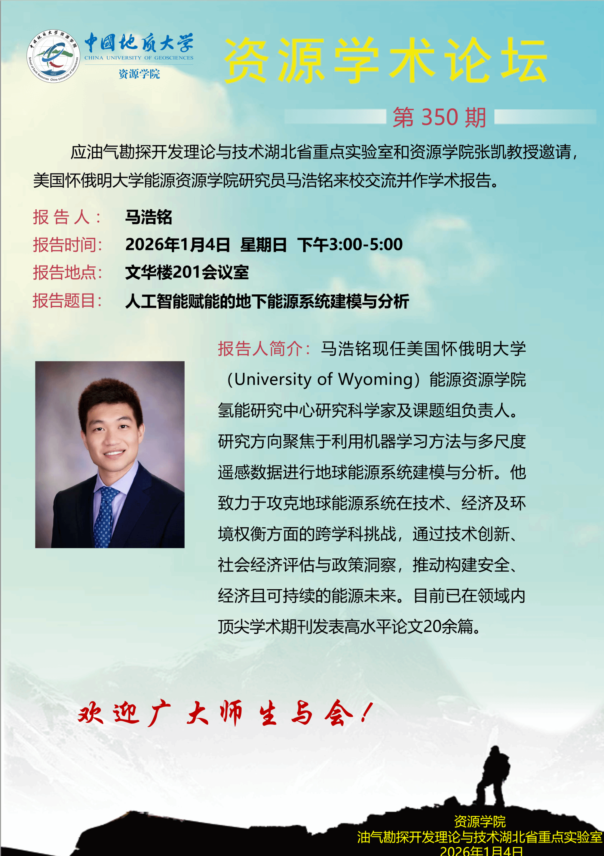 【1月4日】第350期bevictor伟德官网,韦德官方网站:马浩铭学术报告