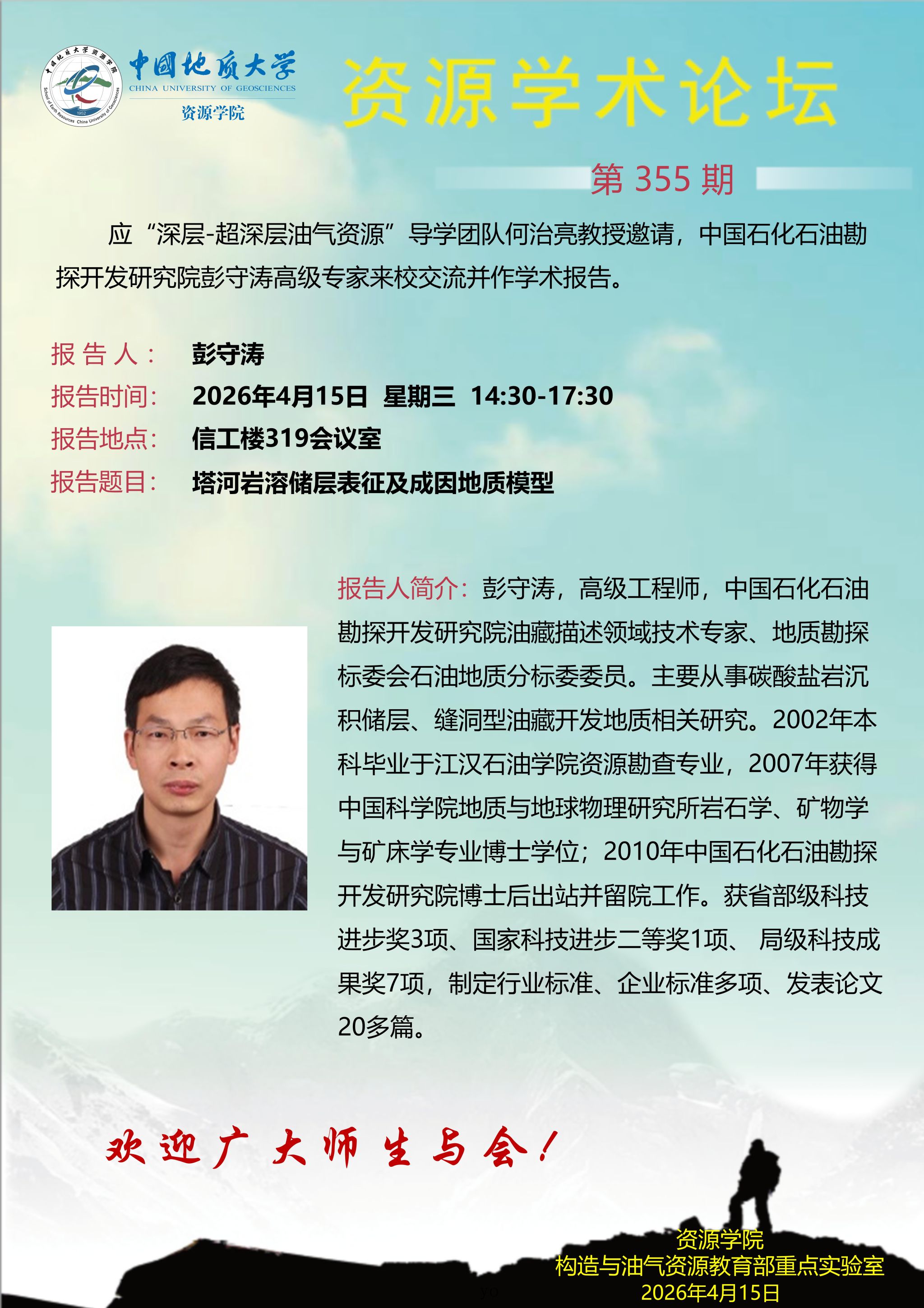【4月15日】第355期bevictor伟德官网,韦德官方网站:彭守涛学术报告