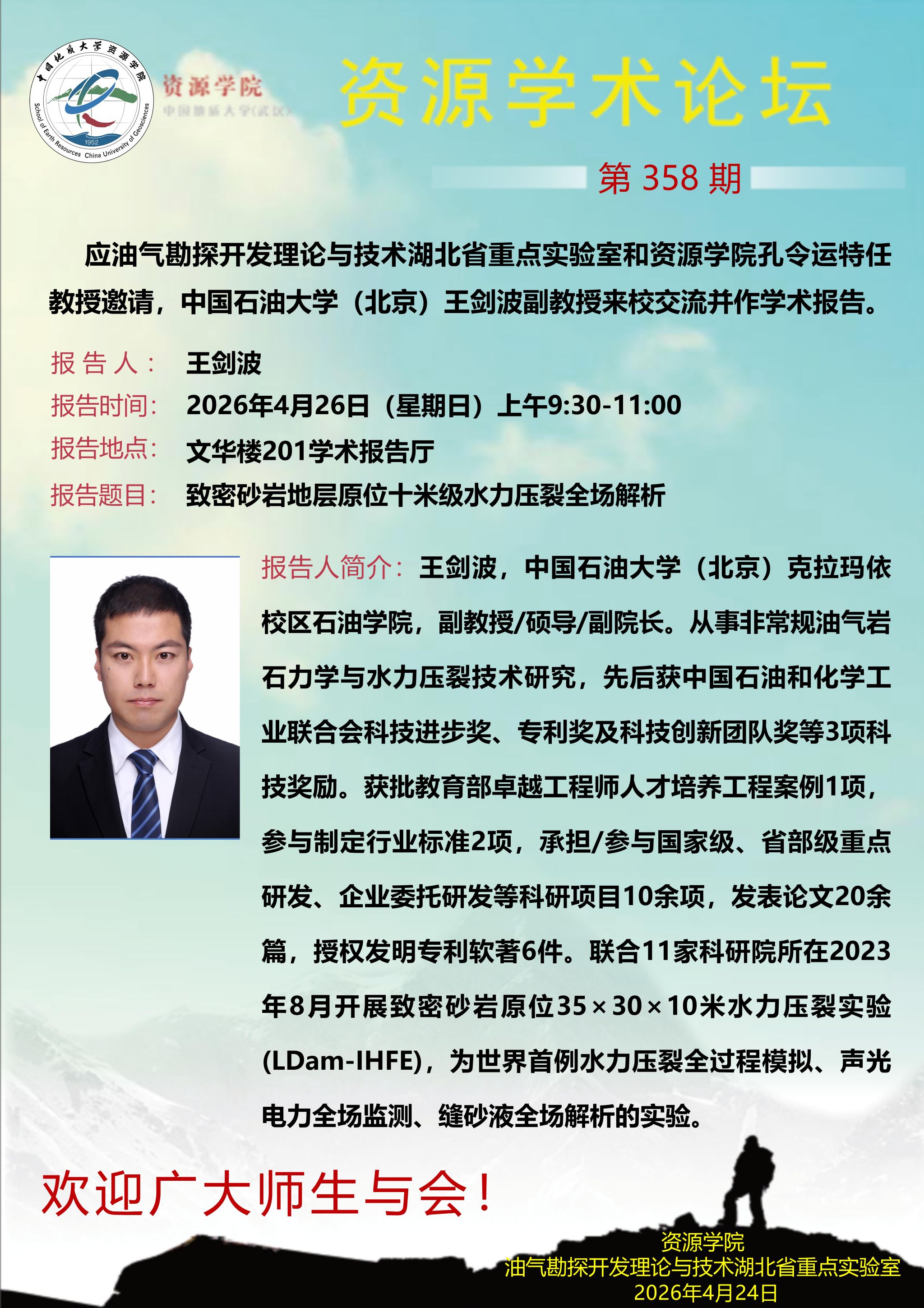 【4月26日】第358期bevictor伟德官网,韦德官方网站:王剑波学术报告