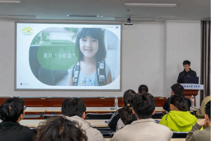 在故事分享环节,山中花儿爱心助学团负责人张云凯分享了“小红花”支教团在贵州遵义支教时与“爱心小孩”张俊诚的故事,言语朴实而真挚,字里行间无不透露着对于乡村留守儿童的关切与同情。他希望有更多的同学利用暑期用脚步丈量山里的乡村道路,用爱心书写育人的青春华章。