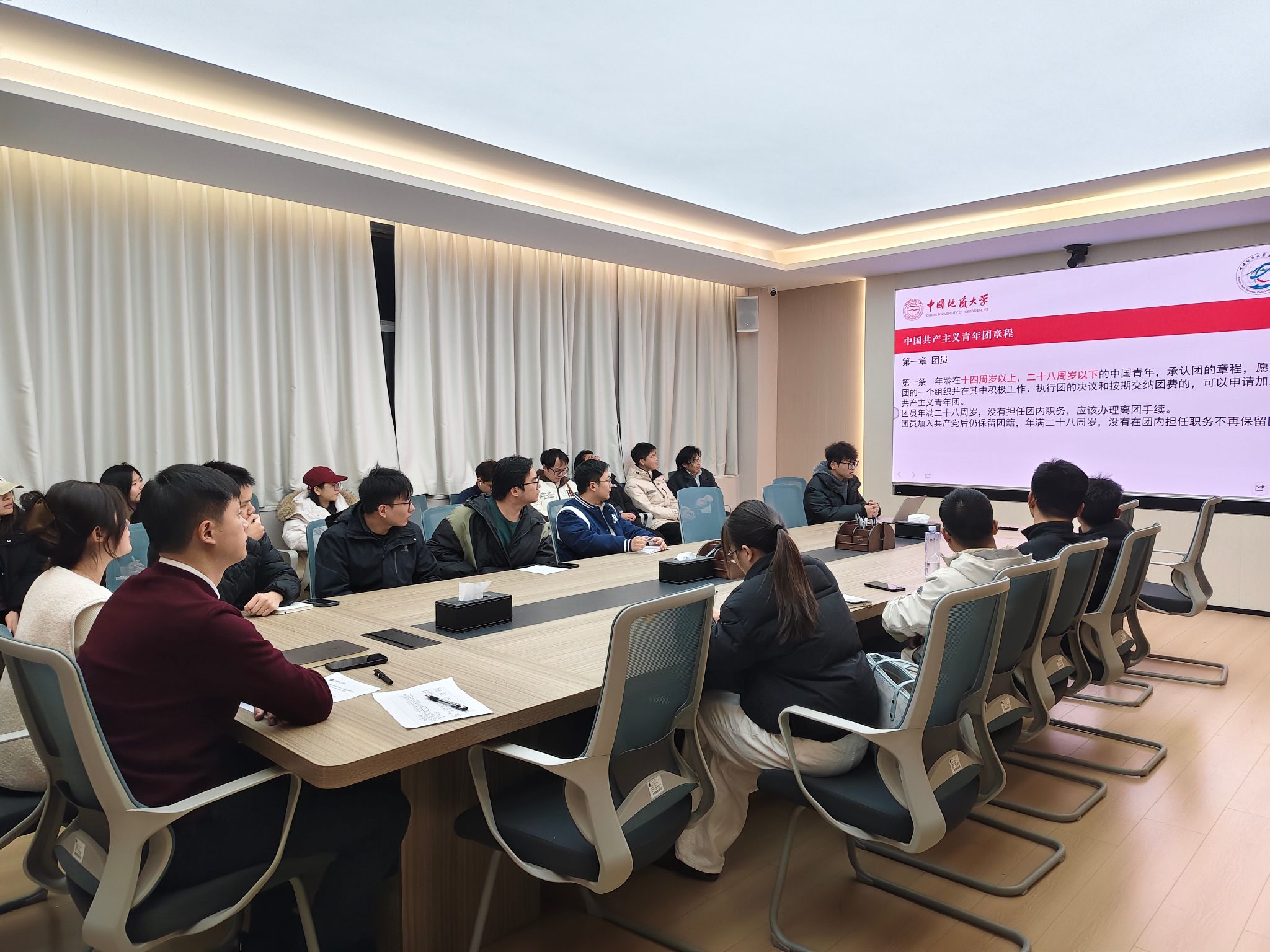 工作布置环节,刘睿就中国大学生自强之星报名、我把地大带回家、首届“求实杯”创新大赛等专项工作做了提示。林心悦就培养环节、校园电动车行驶规范、请销假制度、团费缴纳、科研诚信、防范网络诈骗和安全教育等工作做了强调提醒,并结合实际案例,提醒研究生们提高安全防范意识,规范自身行为。