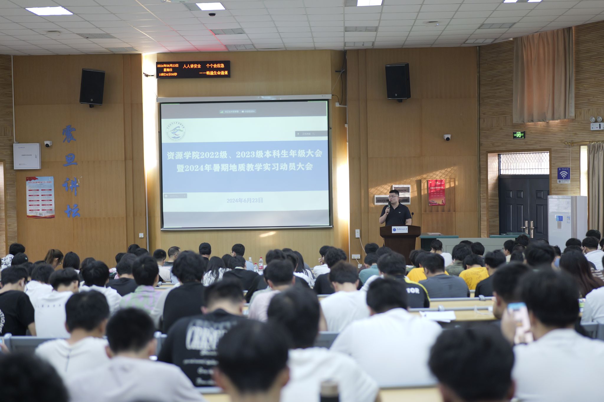 (通讯 冯思佳 彭鑫 摄影 李卓华 范汤豪)为做好大一大二年级学生暑期野外实习和社会实践的安排布置工作,提高学生在暑期的安全防范意识和能力,引导学生做好学涯规划,6月23日晚,bevictor伟德官网举行2024年暑期地质教学实习动员大会暨2022级、2023级本科生年级大会。周口店实习队队长魏启荣、秭归实习队队长李嘉光、北戴河实习队队长董田、辅导员彭鑫,兼职辅导员冯思佳,学生代表陈宇、王雨乐、吴佳桁、余慧、敖扬洋,2022、2023级全体本科生参加会议。
