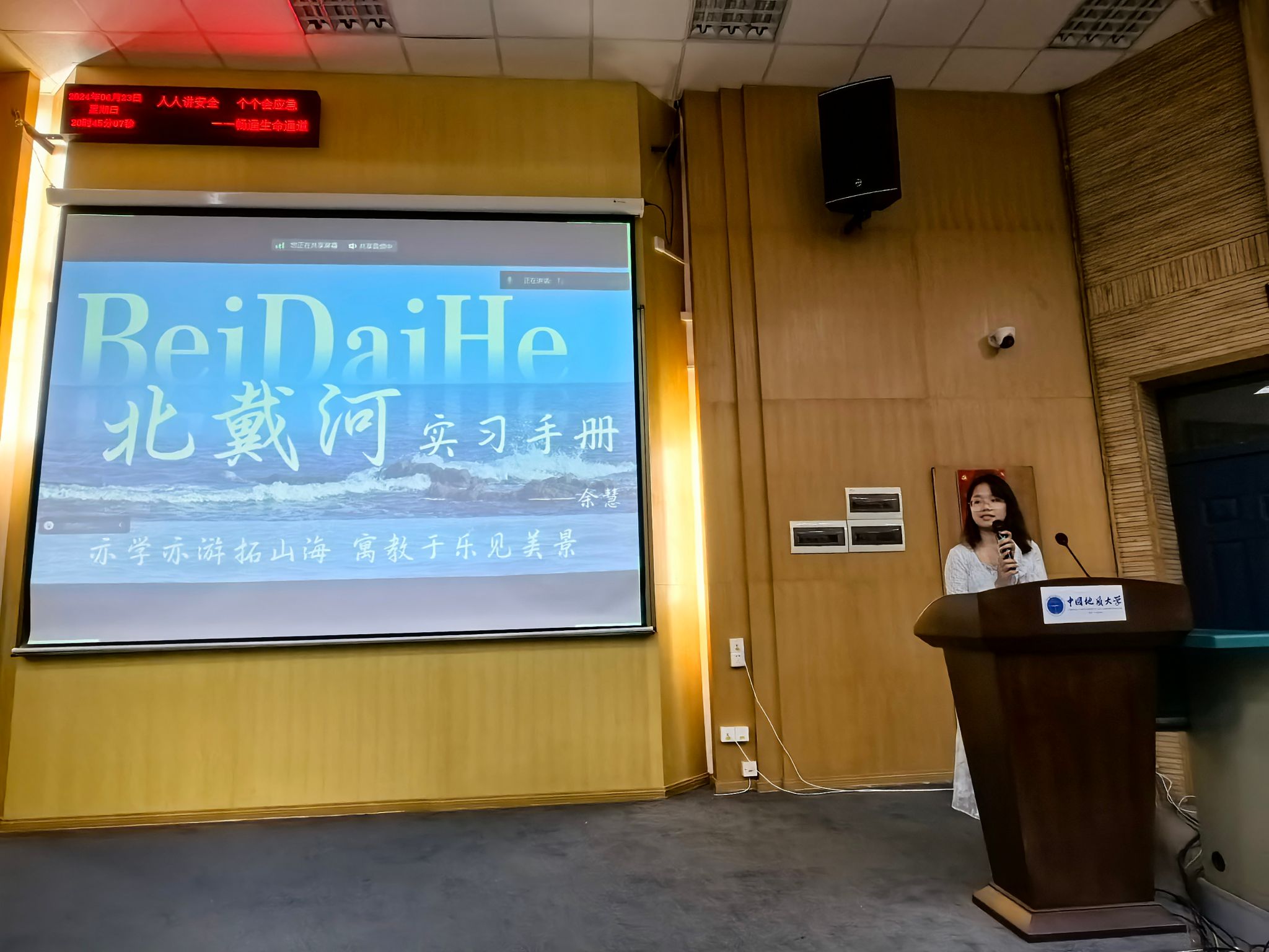 学院2024届学生会执行主席余慧作《北戴河攻略》实习主题分享。她真诚赠言大家四个“尽情”,即尽情期待、尽情学习、尽情实践、尽情回忆,并期望大家亦学亦游拓山海、寓教于乐见美景,学在旅途、乐享其中。