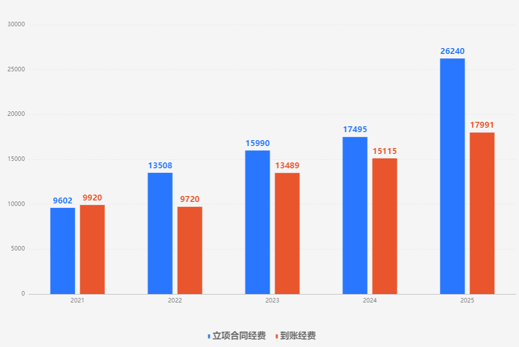 bevictor伟德官网2021年-2025年立项合同经费、到账经费情况