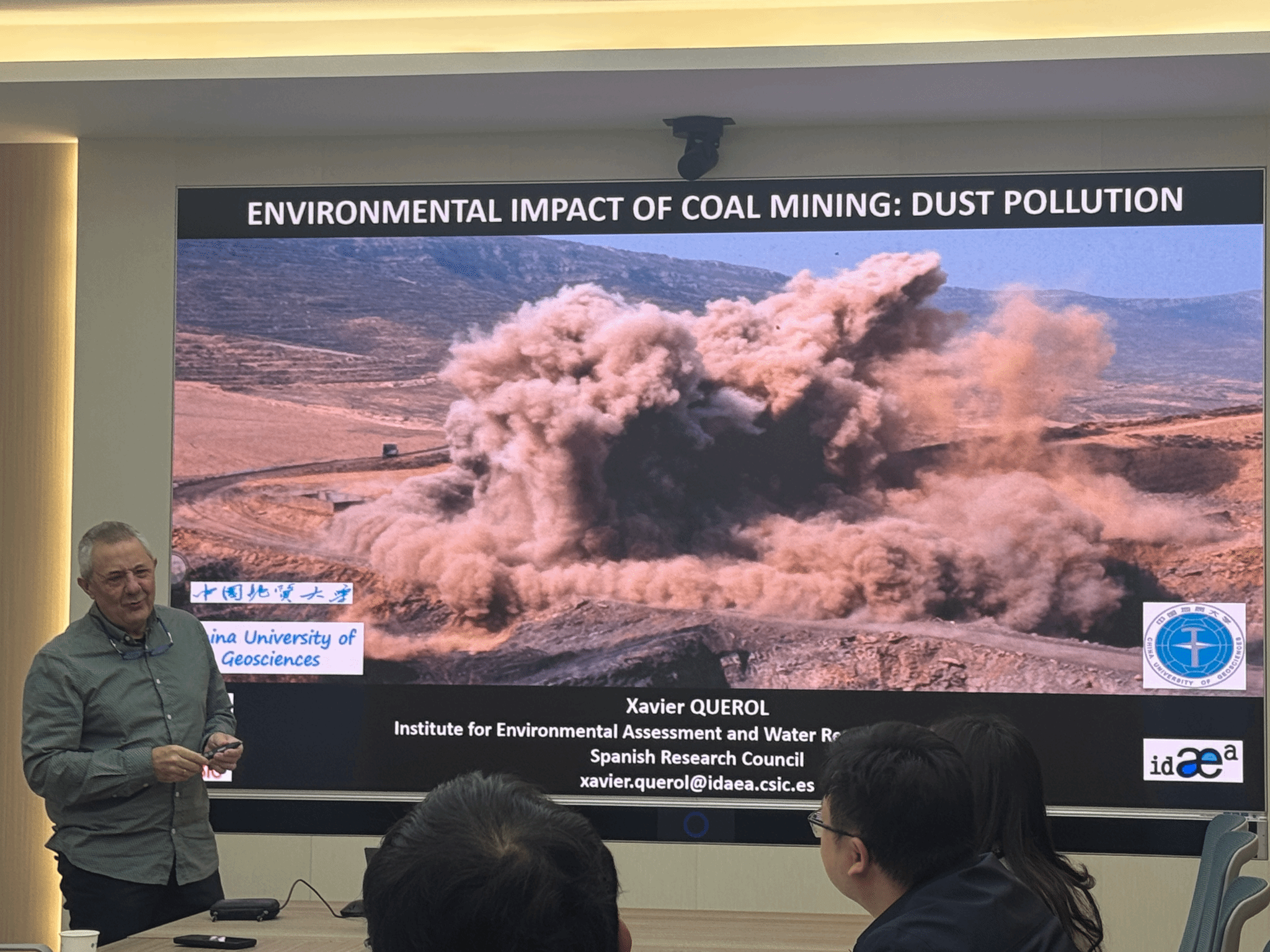会上,Xavier Querol教授作“采矿粉尘:来源、特征、影响与控制策略”主题报告,介绍了其在环境地球化学领域的研究成果。Xavier Querol教授是国际著名的煤地质学家和环境地球化学家,主持多项欧盟重大研究项目,发表Web of Science核心期刊论文860余篇,H指数达121,曾获西班牙国家自然资源研究奖、美国地质学会能源地质分会Cady奖,并连续入选科睿唯安高被引科学家榜单。