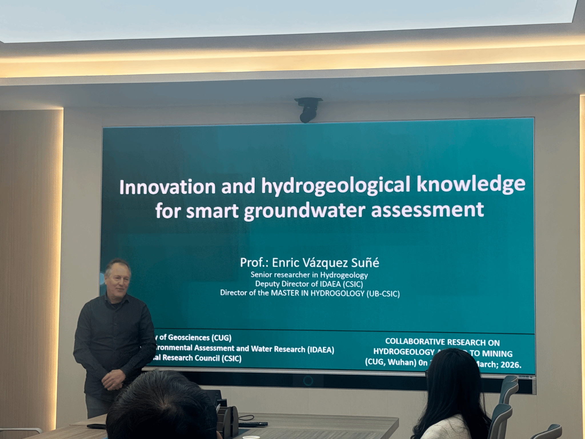 Enric Vazquez Suné教授作“矿业水文地质学”主题报告。Enric Vazquez Suné教授l现任巴塞罗那大学水文地质与模拟系主任、IDAEA-CSIC副所长,主要研究方向包括地下水流模拟、溶质与热量运移、水文地球化学及浅层地热系统等。他发表SCI论文124篇,拥有14项软件专利,主持国内外研发项目150余项。