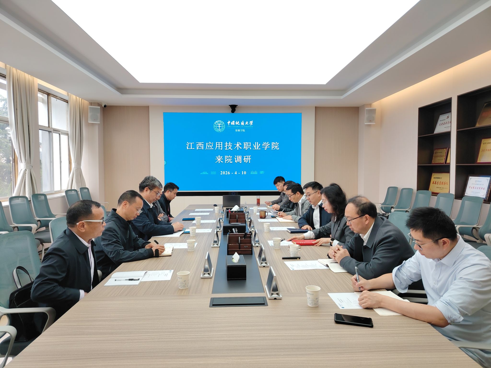 4月10日,江西应用技术职业学院党委书记张家菁、副院长胡堪东一行来院开展调研座谈,双方围绕学科建设、国际交流、深化合作等方面深入交流。学院党委书记汪再奇,学校办公室副主任胡燕,学院党委副书记谭文伦、副院长伏海蛟、学术副院长刘泽瑞,资源科学与工程系主任孙华山,以及双方相关单位负责人参加座谈。汪再奇主持会议。