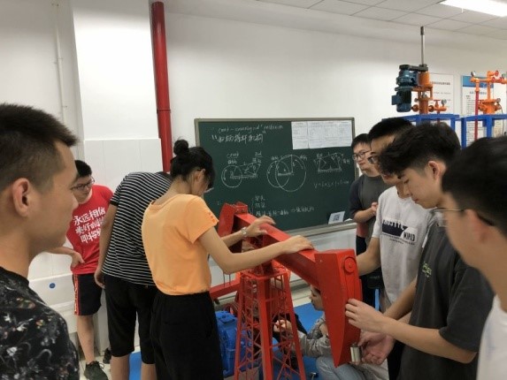 石油工程专业实训,同课堂教学模式一样,都需要系统的课程设计和实践进度,实现学生将专业知识与实践活动紧密结合。这次实训,在两校老师多次研讨下,设定了现代加工技术、钻井工艺与装备、固完井技术、油气开采、录井、修井工艺与装备、集输管道知识和训练、海洋油气开采和油气生产物联网技术等全面和系统的专业实训内容,采用课程讲解和仿真操作的授课方式,让同学们充分利用实训设备进行演练实践。实训中,同学们一边听取任课老师的专业讲解,一边亲自动手组装抽油机和钻具等模型、进行集输管道安全管控和VR模拟井场操作。