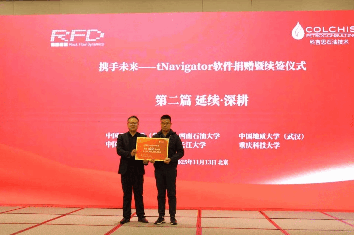 2025年11月13日,应科吉思石油技术咨询(北京)有限公司邀请,bevictor伟德官网学术副院长杨峰和石油工程系教师雷霆出席了科吉思石油技术公司和俄罗斯Rock Flow Dynamics (RFD)公司联合举办的《2025精细油气藏高效勘探开发学术交流会暨tNavigator技术研讨会》暨tNavigator 软件捐赠仪式。
