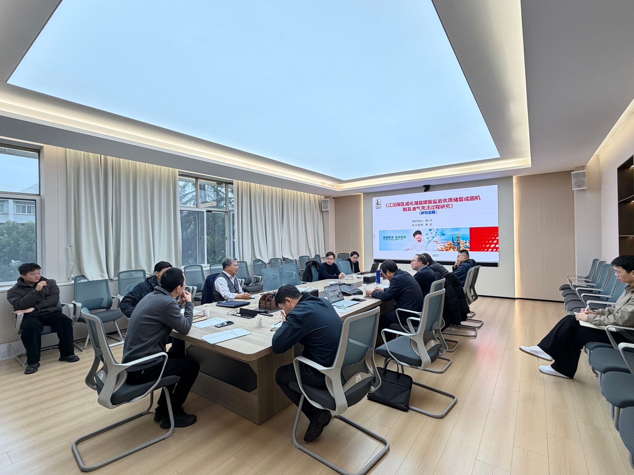 伏海蛟主持会议,他详细介绍了江汉油田创新联合体项目群的立项背景以及开展本次阶段性进展交流会的目的与重要意义。随后,郭小文、韩元佳、孔令运、李恒、骆杨、石万忠、龚斌、杨锐等9人,分别从项目概况、阶段研究成果、现场应用情况、问题与下步工作安排等方面汇报了各自项目的阶段性进展,何治亮针对每个项目均作了系统且深入的点评。
